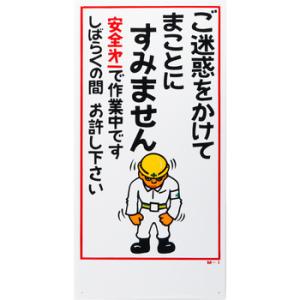 イラスト標識 日本緑十字社 M-1 ご迷惑をかけて まことに すみません 安全第一で作業中です しばらくの間 お許し下さい