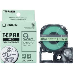 テプラPROテープ カラーラベル(ソフト) キングジム SW9GH ミントグリーン/グレー文字