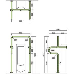 小便器用床付手摺(樹脂被膜補助手摺) ノーブランド AT-201/座金Iタイプ ブルー