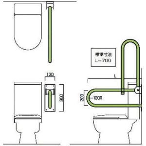 洋式トイレ用縦(上下)可動跳ね上げ式手摺(樹脂被膜補助手摺) ノーブランド AT-159 700ミリ/ピンク