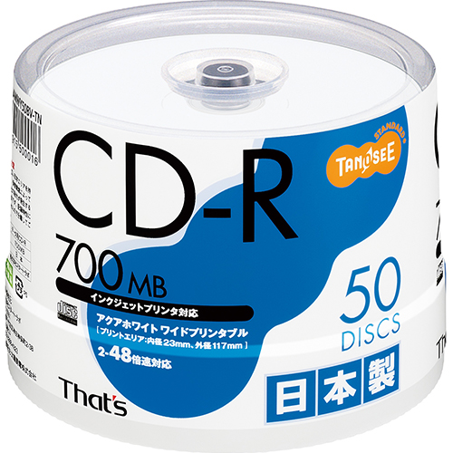 TANOSEE データ用CD−R 700MB プリンタブル CDR80AWWY50BV−TN 1パック(50枚)