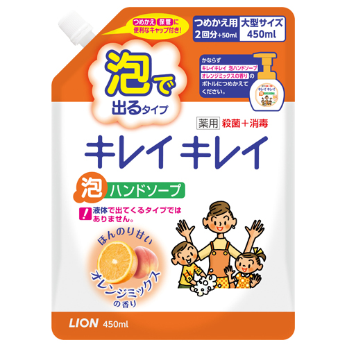 ライオン キレイキレイ 薬用泡ハンドソープ オレンジミックスの香り つめかえ用大型 450ml BPHAOTL*J 1個