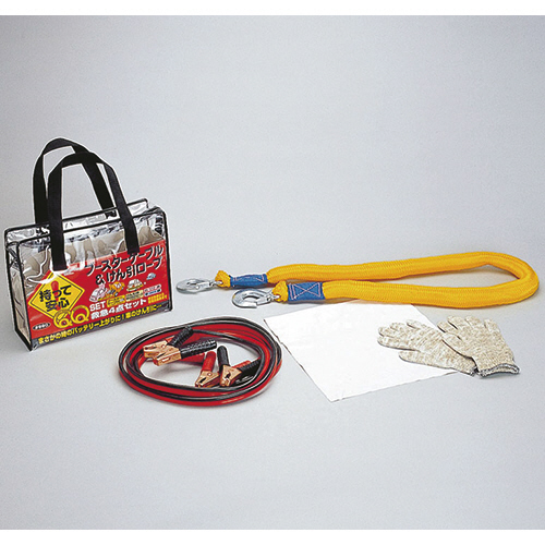 大自工業 QQセット (ブースターケーブル50A・牽引ロープ3t・白旗・手袋) #990 1パック