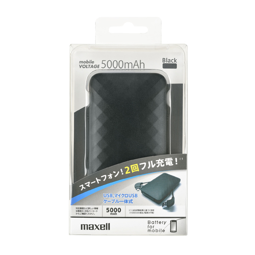 マクセル モバイル充電バッテリー 5000mAh ブラック MPC−C5000BK 1個