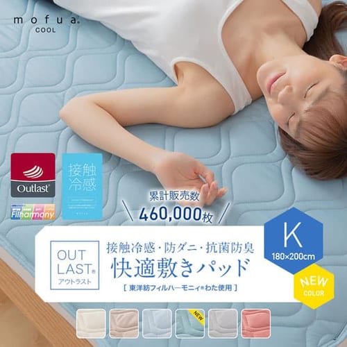 ナイスデイ mofua cool アウトラスト接触冷感・防ダニ・抗菌防臭快適敷パッド(東洋紡フィルハーモニィ(R)わた使用) K 全6色